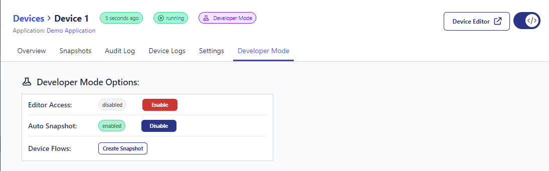 For devices running v2.4.1 or later of the Device Agent, Node-RED will get updated when the setting is saved. For older versions of the Device Agent, it will require a new snapshot to be deployed to trigger the update.
